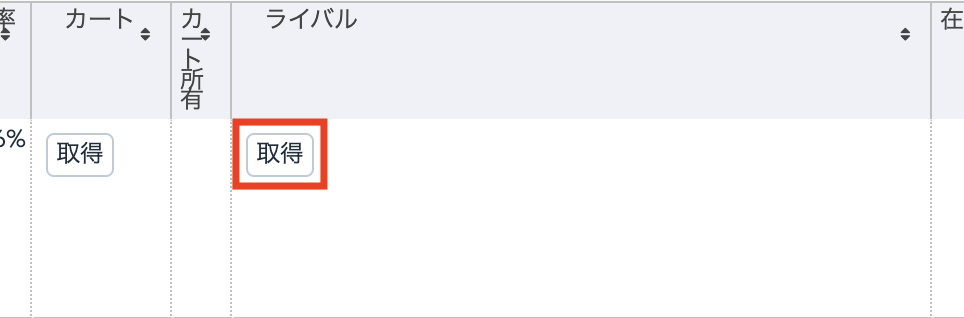 ※「取得」ボタンをクリックすると、各ライバルの在庫数の取得が可能です。