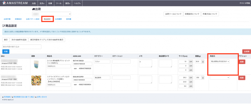 ●SKUと発送元を紐付けて商品データに保存し、初回登録後、2回目以降は発送元が自動反映します。